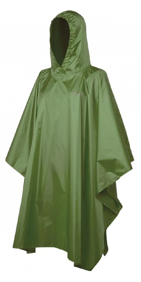 TrekMates Tour Poncho: nepromokavé poncho obdélníkového tvaru. Po stranách má zapínání na suchý zip, díky tomu lze poncho rozepnout a zadní díl přehodit přes batoh. Je velmi lehké a malé po sbalení. Lze celé rozložit a použít jako podložku pod karimatku.