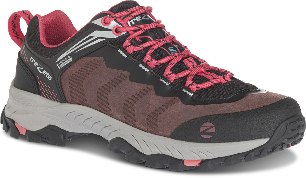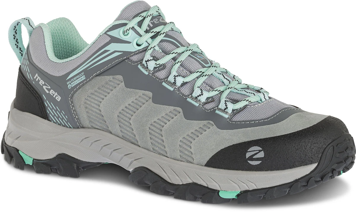 Trezeta Hype Ws Wp: dámská bota určená pro běžnou turistiku. Svršek bot je z nepromokavého semiše a textilní tkaniny s membránou Water Stopper. Je to membrána, která zabraňuje pronikání vnějších nečistot a vlhkosti do boty. Špička a pata bot je zpevněná. Boty mají ultralehkou mezipodešev Eva pro pohodlné odpružení a stabilitu. Podešev Vibram® Dom zajistí vynikající přilnavost i na kluzkém povrchu.