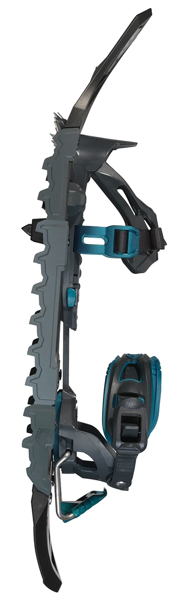 Vázání má v přední části pásek na stáhnutí a přes nárt je ráčna. Vázání je pružné. Sound a shock absorbing system tlumí nárazy paty. Mají podpatěnku, využijete ji pro stoupání do svahu. Drapák vepředu vám pomůže v odrazu v hlubokém sněhu. Pata jde zaaretovat nebo může být volná.