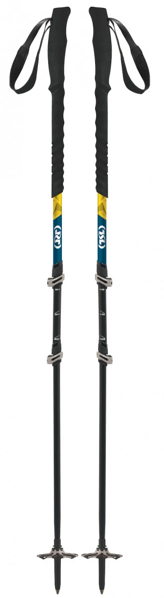 Mají trekové talířky Swing s možností sklopení úhlu až o 20°, kdy se lépe přizpůsobí terénu a botičky na asfalt. Dlouhá rukojeť, pro pohodlnou chůzi z kopce, je z eva pěny, je velmi příjemné nadržení. Poutko je polstrované. Upínání je pomocí speed locků, můžete je ovládat i v rukavicích.