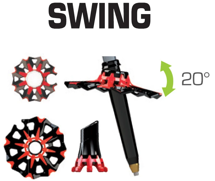 Mají trekové talířky Swing s možností sklopení úhlu až o 20°, kdy se lépe přizpůsobí terénu a botičky na asfalt. Narozdíl od řady Tour Carbon Compact 3 Cross, které mají dlouhou rukojeť pro chůzi z kopce, má tato verze Light pouze krátkou rukojeť z eva pěny. Poutko je polstrované. Upínání je pomocí speed locků, můžete je ovládat i v rukavicích.