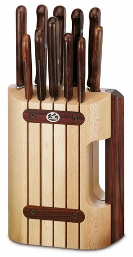 Obsahuje 11 spolehlivých nožů, které vám obstarají libovolnou práci, kterou v kuchyni potřebujete udělat. Hodí se pro začínající domácnosti, které potřebují kompletní sadu. Mají dřevené rukojeti, které jsou velmi příjemné do ruky, ale hodí se spíše pro využití v domácnosti než pro profesionální nasazení, kde je výhodou spíše nenáročná plastová rukojeť.