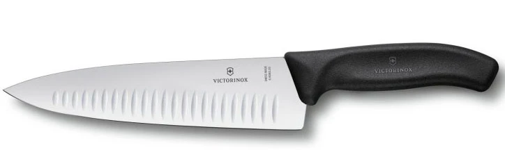 Victorinox Kuchařský nůž Swiss Classic 20 cm: je univerzální kuchyňský nůž, který je určený pro všestrannou práci v kuchyni. Můžete ho použít na maso, cibuli i zeleninu. Délka čepele je 20 cm. Duté výbrusy na široké čepeli brání nežádoucímu lepení krájené suroviny k noži. Nůž je dobře vyvážený.