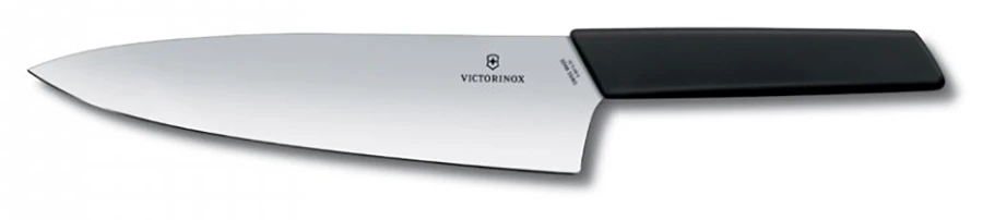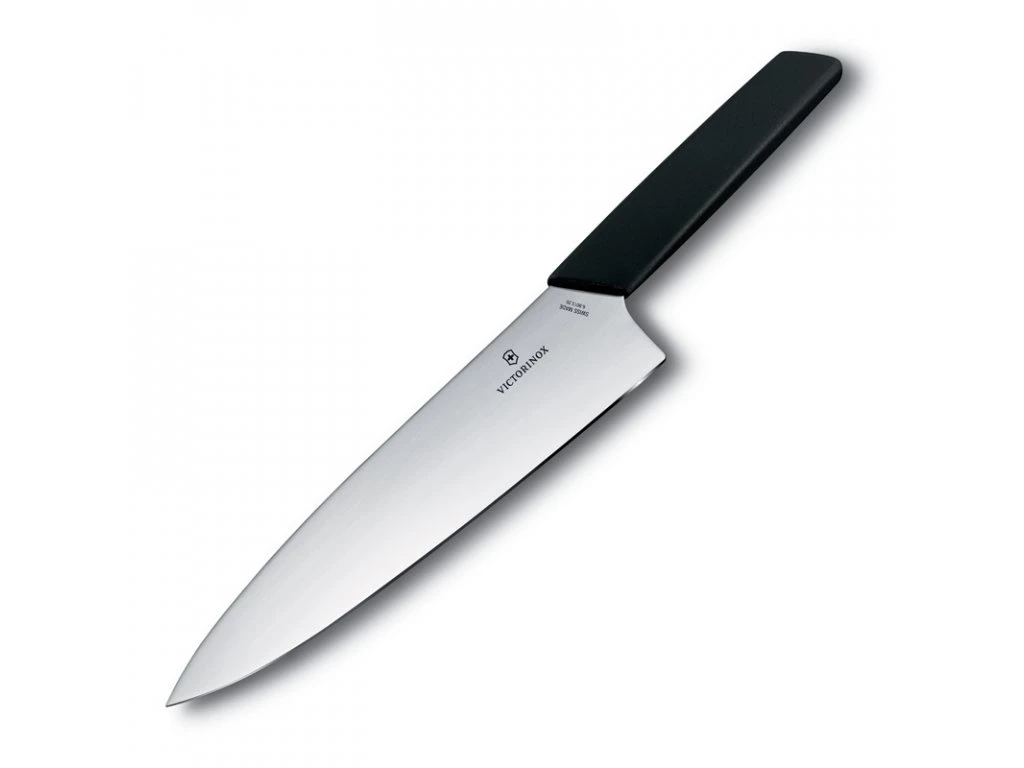 Victorinox Kuchařský nůž Swiss Modern 20 cm černý: kuchyňský nůž s čepelí 20 cm s kvalitní plastovou rukojetí. Ostrá čepel z nerezavé oceli zajistí snadné krájení masa i tvrdého ovoce a zeleniny. Čepel je velmi odolná proti opotřebení.