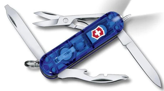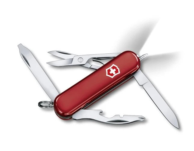 Victorinox Midnite Manager: Kapesní nůž, který si lze v případě potřeby připnout na batoh, nebo klíčenku. Jedná se o šikovného pomocníka, kterého se hodí mít po ruce. Je vybaven LED diodou, takže ani s vybitým mobilem nezůstanete bez osvětlení. Velikost nože je 58 cm.