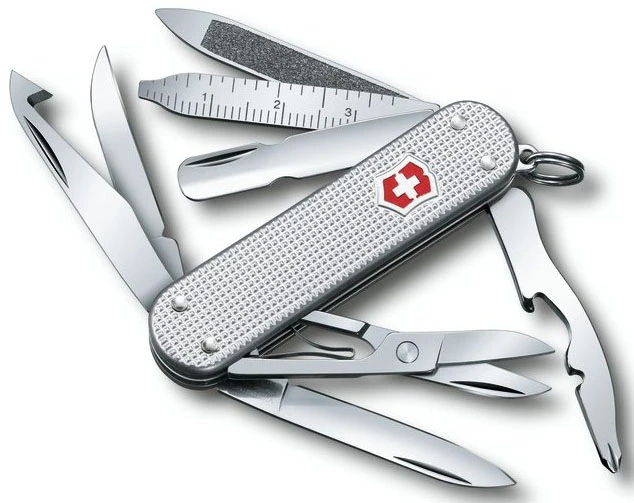 Victorinox Minichamp Alox – je menší otvírácí nůž s délkou čepele 58 mm s hliníkovými střenkami ze Švýcarska. Dá vám to, co od něj očekáváte, vysoká kvalita zaručená originálem, každý nástroj, který budete potřebovat. Má 14 funkcí. Hodí se pro turistiku, kempování, cestování.