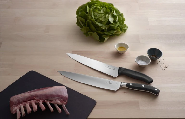 Victorinox Nůž kuchařský Grand Maitre 25 cm: univerzální nůž kovaný z jednoho kusu oceli pro lepší vlastnosti a vysokou pevnost. Ergonomicky tvarovaná rukojeť je plastová, tedy hygienická, ale zároveň se dobře drží za každých okolností.