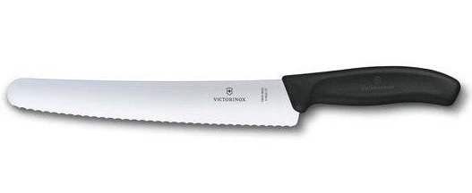 Victorinox Nůž na chleba a pečivo Swiss Classic 22 cm: je kuchyňský nůž určený pro krájení chleba nebo obecně pečiva. Délka čepele je 22 cm. Má dlouhou zahnutou čepel se zaobleným hrotem na polevu a zdobení dortů. Má také vlnkované ostří pro snadné krájení pečiva, dortů a chleba.