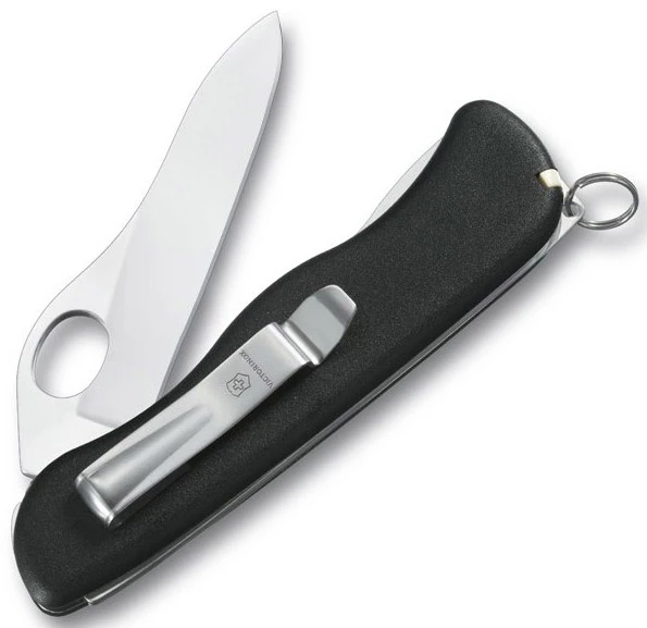 Victorinox Sentinel Clip – je švýcarský zavírací nůž s čepelí o délce 111 mm, který má 4 funkce. Jde otevírat jednou rukou. Má sponu na připnutí na kapsu nebo na opasek.