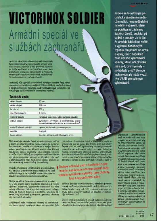 Victorinox Swiss Soldier – je švýcarský zavírací nůž, který je používán ve švýcarské armádě. Má 10 funkcí, pojistku hlavní čepele proti nechtěnému zavíraní.