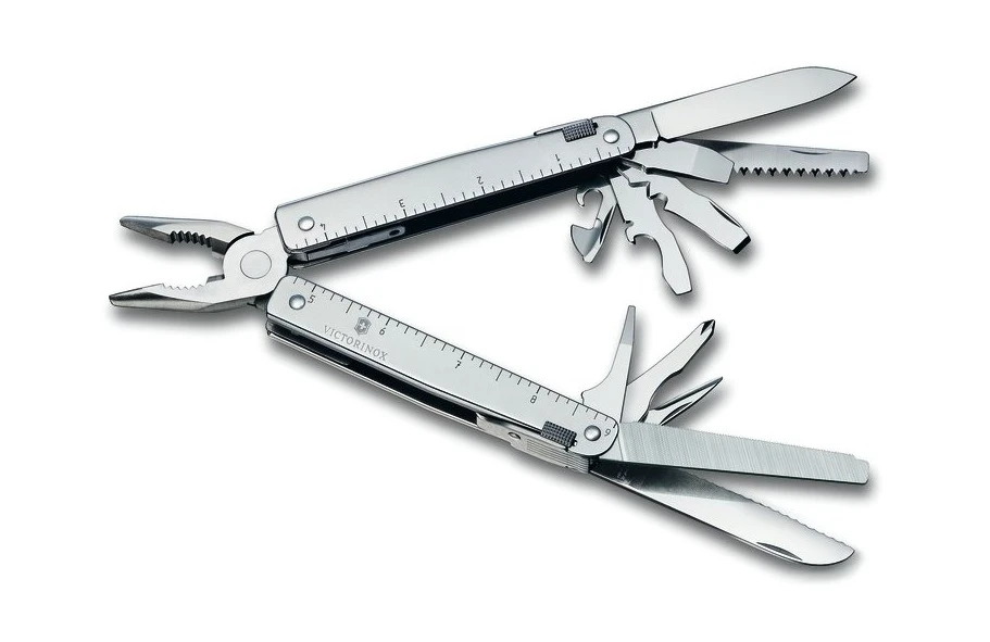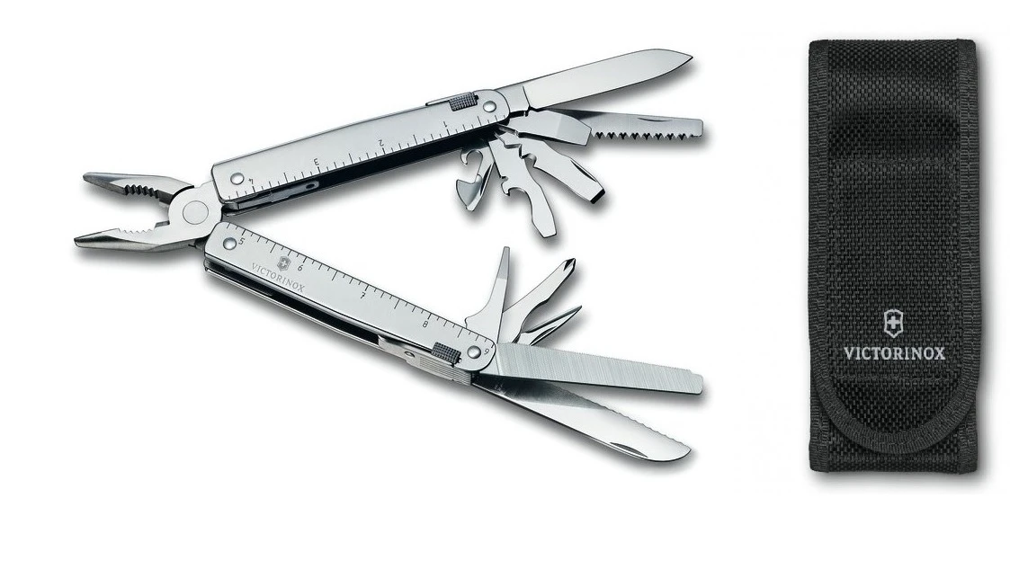 Victorinox Swiss Tool s nylonovým pouzdrem: praktický pomocník do každého batohu na túru, kempování, nebo do dílny a auta. Nabízí vše co by se vám v nepříznivé situaci mohlo hodit. Najdete zde kleště, nejrůznější šroubováčky, pilky na železo a dřevo, klasickou čepel nože apod. Vše jednoduše složíte do kapesních rozměrů, a uložíte do nylonového pouzdra, které je součástí balení.