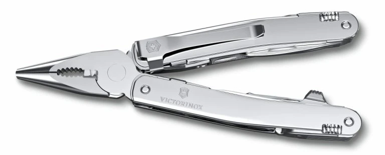 Victorinox Swiss Tool Spirit X s klipem: Multifunkční kleště, které jsou lehké a mimořádně praktické. Jsou vyrobeny z vysoce kvalitní nerezové švýcarské oceli Dauphinox. Kleště nabízí nepočet různých nástrojů na používání. Svoje uplatnění najdou jak v garáži, tak v autě, kapse, nebo batohu. Využijete je téměř na cokoli od stříhání kabelů, až po otevírání lahví. Kleště mají praktický klip na uchycení do kapsy.