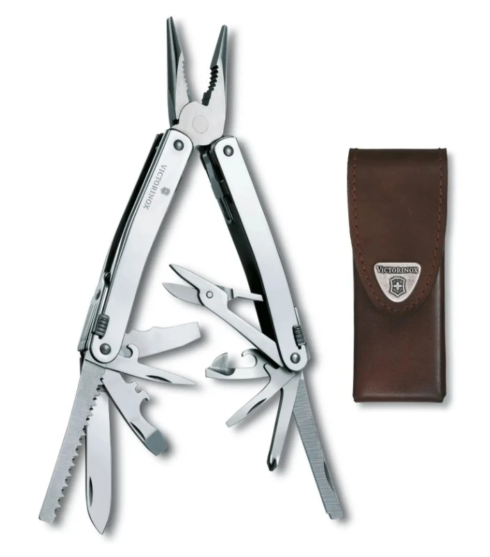 Victorinox Swiss Tool Spirit X: Multifunkční kleště, které jsou lehké a mimořádně praktické. Jsou vyrobeny z vysoce kvalitní nerezové švýcarské oceli Dauphinox. Kleště nabízí nepočet různých nástrojů na používání. Svoje uplatnění najdou jak v garáži, tak v autě, kapse, nebo batohu. Využijete je téměř na cokoli od stříhání kabelů, až po otevírání lahví. Celá sada je uložená pohromadě v praktickém koženém pouzdře, které je součástí.