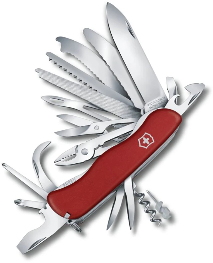 Victorinox Workchamp XL – robustní kapesní multifunkční nůž s délkou 111 mm, má neuvěřitelných 31 nástrojů, dá se tak využít téměř na cokoliv. Nůž má pojistku proti nechtěnému zavíraní. Střenky jsou plastové a jsou anatomicky tvarované.