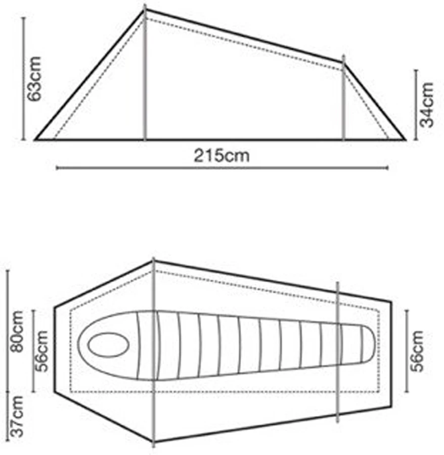 Rozměry stanu: 215×117×63 cm