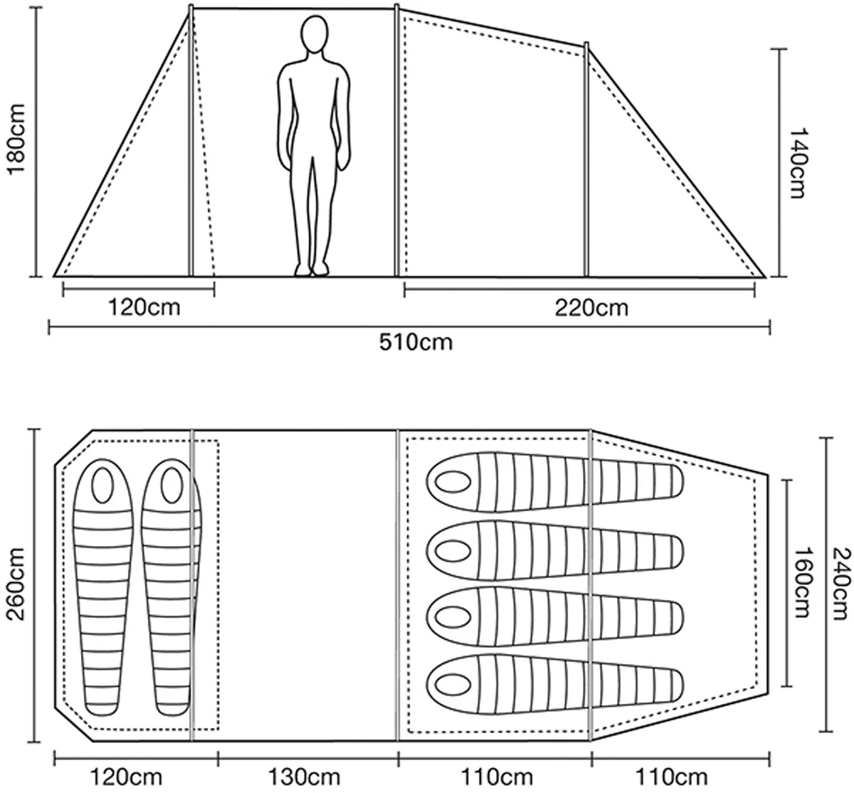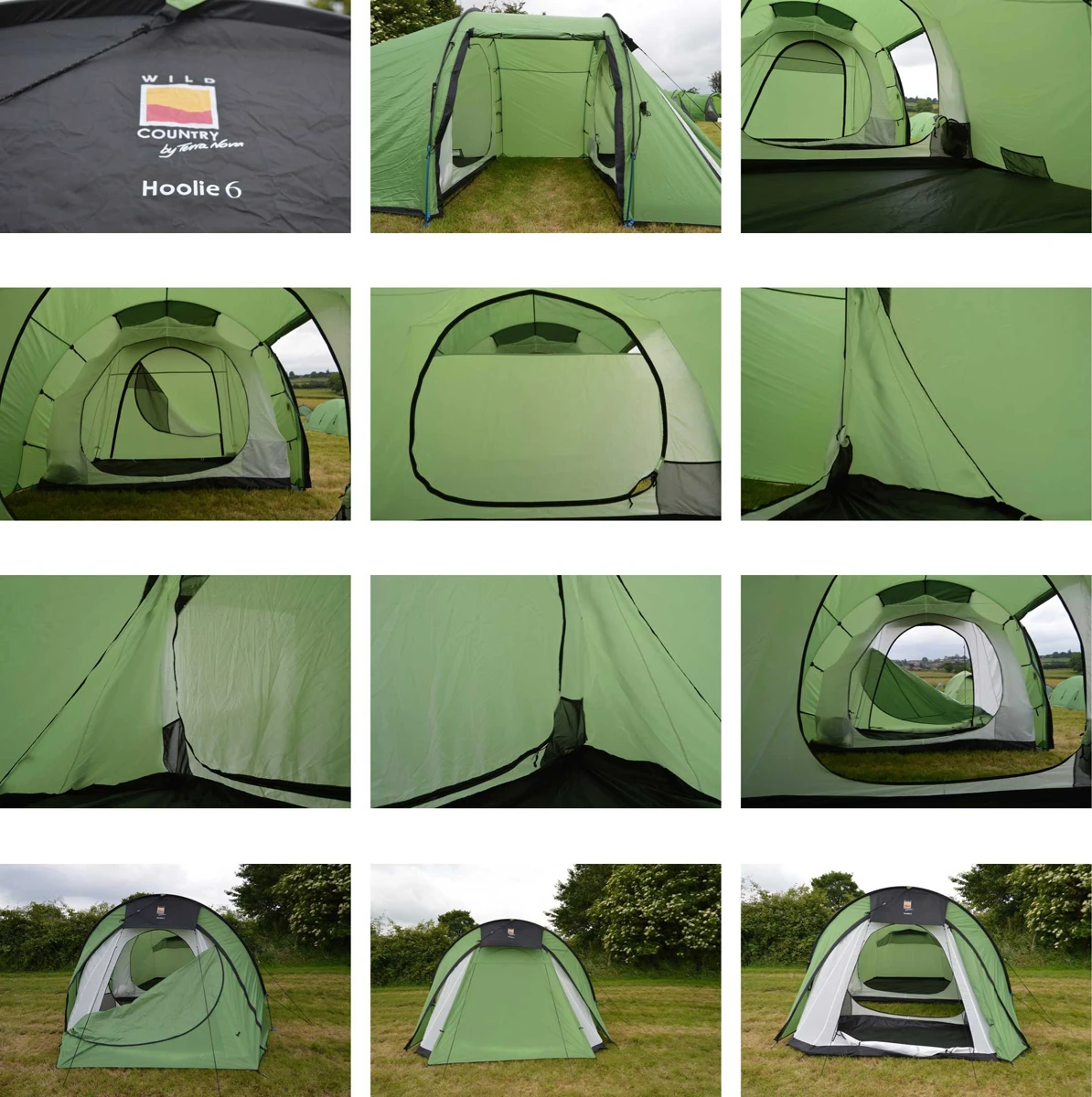 Wild Country Hoolie 6 : je vhodným modelem pro kempování v nejistém počasí. Wild Country zaručí jeho spolehlivou nepromokavost. Je vhodný pro 6 osob, má velkou ložnici pro 4 osoby a druhou pro dvě osoby. Tento typ konstrukce maximálně využívá vnitřní prostor stanu, boční stěny jsou prakticky kolmé. Má zajímavou hmotnost (minimální váha 6750 g a plná 6350 g).