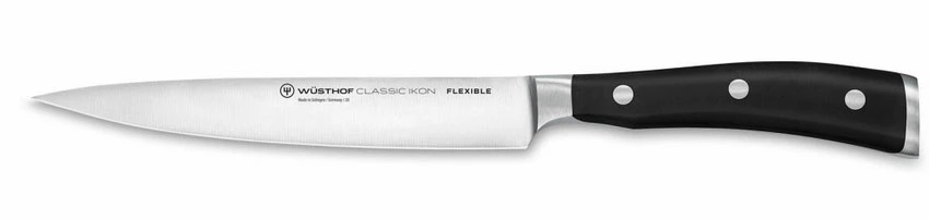 Wusthof Classic Ikon Nůž filetovací 16 cm : je filetovací nůž, který použijete pro zpracování ryb, Hodí se na stahování kůže nebo filetování. Má podobný tvar jako vykošťovací nůž, ale je mnohem tenčí a pružnější aby dokázal kopírovat kosti na odřezat maximum masa.