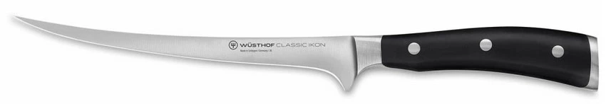 Wusthof Classic Ikon Nůž filetovací 18 cm : je filetovací nůž, který použijete pro zpracování ryb, Hodí se na stahování kůže nebo filetování. Má podobný tvar jako vykošťovací nůž, ale je mnohem tenčí a pružnější aby dokázal kopírovat kosti na odřezat maximum masa.