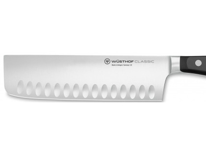 Wusthof Classic Ikon Nůž Nakiri 17 cm : je tenký nůž japonského tvaru určený pro sekání velké zeleniny nebo ovoce. Hodí se i na tvrdou zeleninu a ovoce. Nehodí se pro využití jako sekáček na kosti.