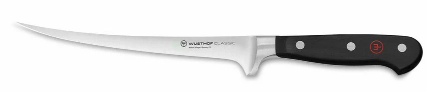 Wusthof Classic Nůž filetovací 18 cm : je nůž ideální pro filetování ryb jako je losos, pstruh nebo kapr. Ale také s ním výborně stáhnete z kapra kůži. Je velmi pružný, díky tomu kopíruje kosti a nechává na nich minimální zbytky masa. Tvar je podobný jako u vykošťovacích nožů, ale je mnohem tenčí a pružnější.