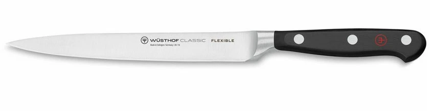 Wusthof Classic Nůž filetovací na ryby 16 cm : je nůž ideální pro filetování ryb jako je losos, pstruh nebo kapr. Ale také s ním výborně stáhnete z kapra kůži. Je velmi pružný, díky tomu kopíruje kosti a nechává na nich minimální zbytky masa. Tvar je podobný jako u vykošťovacích nožů, ale je mnohem tenčí a pružnější.