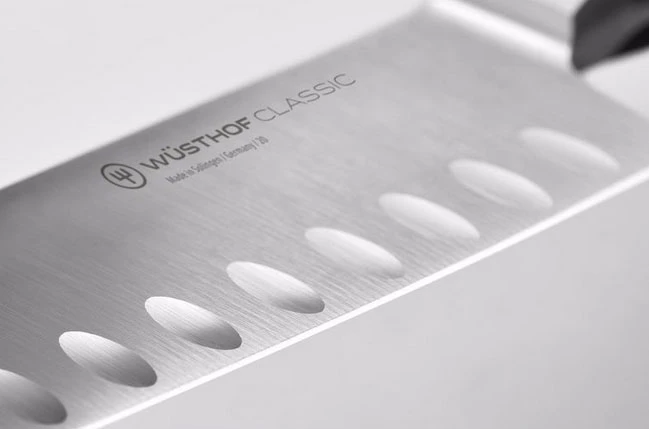 Čepel je kovaná s dutě vrobkovanou čepelí (vytváří kapsy vzduchu, který brání přilepení masa) a má hladké ostří a je vyrobená z kvalitní nerezové oceli X50CrMoV15. Je kalena 15 minut při teplotě 1070 °C a ve dvou minutách prudce ochlazují na 60 °C. Popouštěním na teplotu 200 °C po dobu 45 minut se čepel zbavuje vnitřního pnutí a stabilizuje se její martenzitická struktura. Výsledná tvrdost je 58° Rockwella.