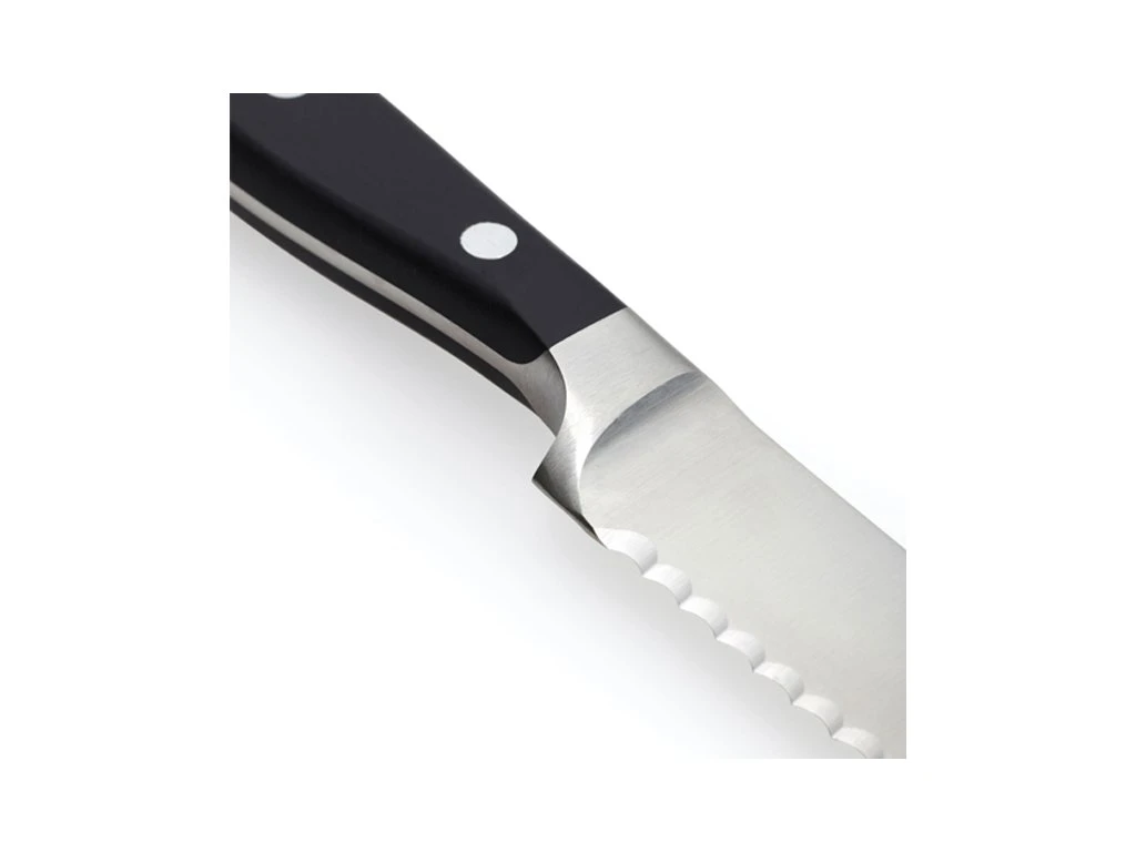 Čepel má zoubkované ostří a je vyrobená z kvalitní nerezové oceli X50CrMoV15. Je kalena 15 minut při teplotě 1070 °C a ve dvou minutách prudce ochlazují na 60 °C. Popouštěním na teplotu 200 °C po dobu 45 minut se čepel zbavuje vnitřního pnutí a stabilizuje se její martenzitická struktura. Výsledná tvrdost je 58° Rockwella.