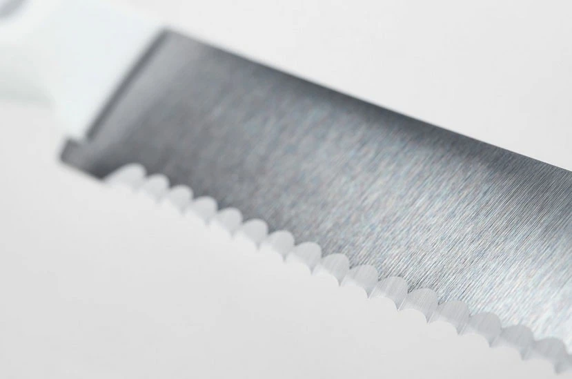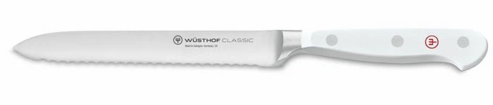 Wusthof Classic White Nůž na uzeniny 14 cm : je menší nůž se zoubkovanou čepelí, který se hodí pro krájení uzeniny, ale i baget, bulek nebo chleba.