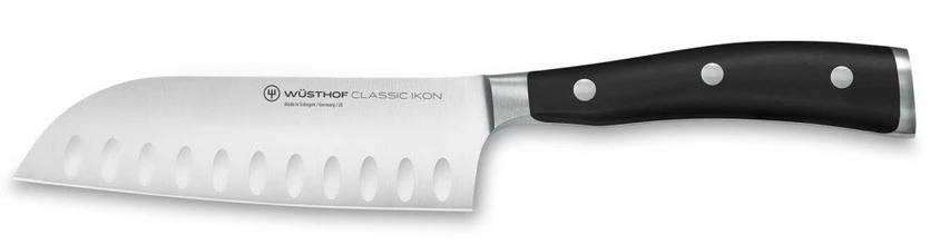 Wusthof Santoku Classic Ikon 14 cm : je nůž japonského tvaru určený pro krájení zeleniny, ovoce nebo ryb nebo masa. Hodí se pro přípravu asijského jídla, kde je hodně zeleniny a materiál se často krájí na tenké nudličky nebo proužky. Tvar Santoku není úplná japonská klasika, vznikl až masivním rozšířením masa do běžné konzumace.