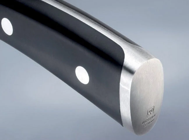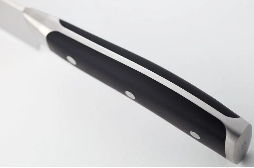 Tvarovaná rukojeť je z odolného a na pohled velmi pěkného materiálu v krémovém designu, dobře se drží, je příjemná, ale hlavně bezúdržbová, nevadí ji voda, je vysoce odolná. Střenky rukojeti jsou trvanlivě spojeny třemi nýty z nerezové oceli.