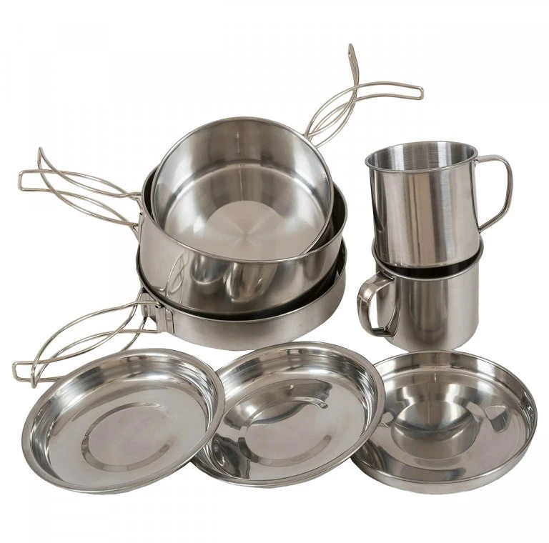 Highlander Peak Weekender: sada na vaření pro 2 osoby z kvalitní nerezové oceli. Nerezová ocel se neodírá a nepodléhá opotřebení, vydrží tedy mnoho let.