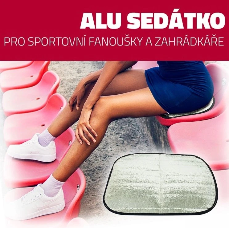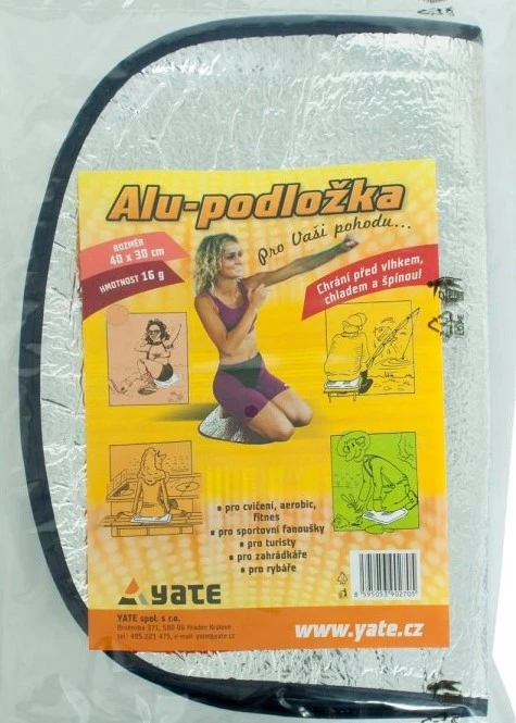 Yate Alu sedátko: lehké a skladné sedátko s alu folií proti chladu a vlhkosti. Hodí se pro sportovní fanoušky, rybáře, zahrádkáře, pro turisty.