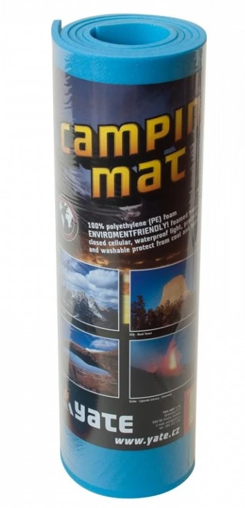 Yate karimatka Jednovrstvá 8: Hodí se především pro cvičení, camping, turistiku, nebo na pláž. Materiál použitý na výrobu je lehký, měkký a nesaje vodu. Dobře ochrání před vlhkem a chladem a poskytne pohodlí úměrně k tloušťce a stavu terénu.