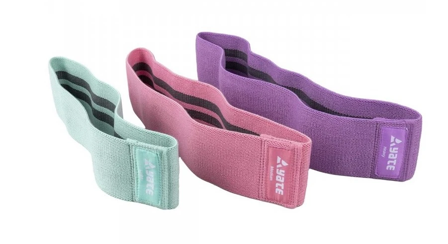 Yate Posilovací gumy set 3 ks: Bavlněné posilovací gumy pro zvýšení odporu při cvičení. Jsou určeny na posilování, fitness nebo jako rehabilitační pomůcka po úrazu, nebo formování postavy. Slouží k posílení a strečinku. Odporová guma při cvičení zvyšuje zátěž, svaly se napínají a odpor způsobuje, že vyvíjejí více síly- díky tomu zpevňujete tělo a budujete svaly. Cvičení s gumou se doporučuje pro udržení fyzické kondice a její zlepšení, například při sedavém zaměstnaní. Při cvičení si gumu navlékáte na kotníky nebo stehna.