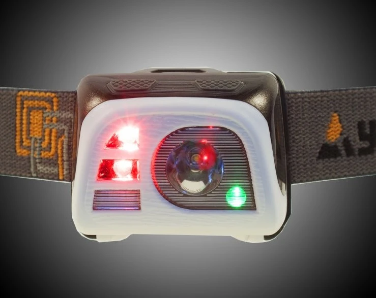 YATE VEGA Čelová lampa: Čelovka se hodí na většinu venkovních aktivit. Ať už se jedná o lezení, běh, cyklistiku, procházku se psem nebo třeba rybaření, určitě si ji oblíbíte díky jejím vlastnostem. Tělo čelovky je lehké a je vyrobeno z kvalitního plastu, který je odolný proti stékající vodě. Svítilna je vybavena třemi světelnými zdroji: výkonnou diodou 3W XPE (140 lm), dvěma červenými LED diodami a bílou SMD LED, která bohatě stačí na chůzi a významně šetří baterii. Stav baterií indikuje zelená LED dioda vpravo dole.