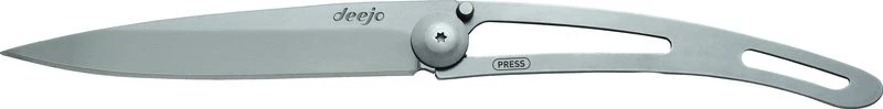 Deejo Naked 37 g – minimalistický design, plnohodnotná velikost, minimální hmotnost. Je atypický, má klip na upnutí do kapsy. Tento zavírací nůž má hmotnost jen 37 gramů. Má nerezovou čepel a pojistku pro nechtěnému zavření.